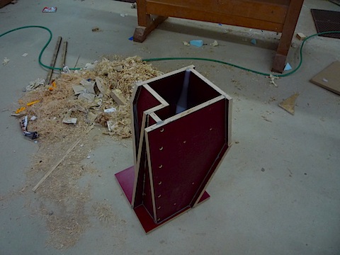 Another section. There are four pieces to this mold. The removable joints are screwed and caulked with a latex caulk. I find that this combination is the best when it is time to remove the form from the cured concrete. If you use silicone caulk you will damage the form. If you don't seal the joint it will look dry and ragged where the water ran out.